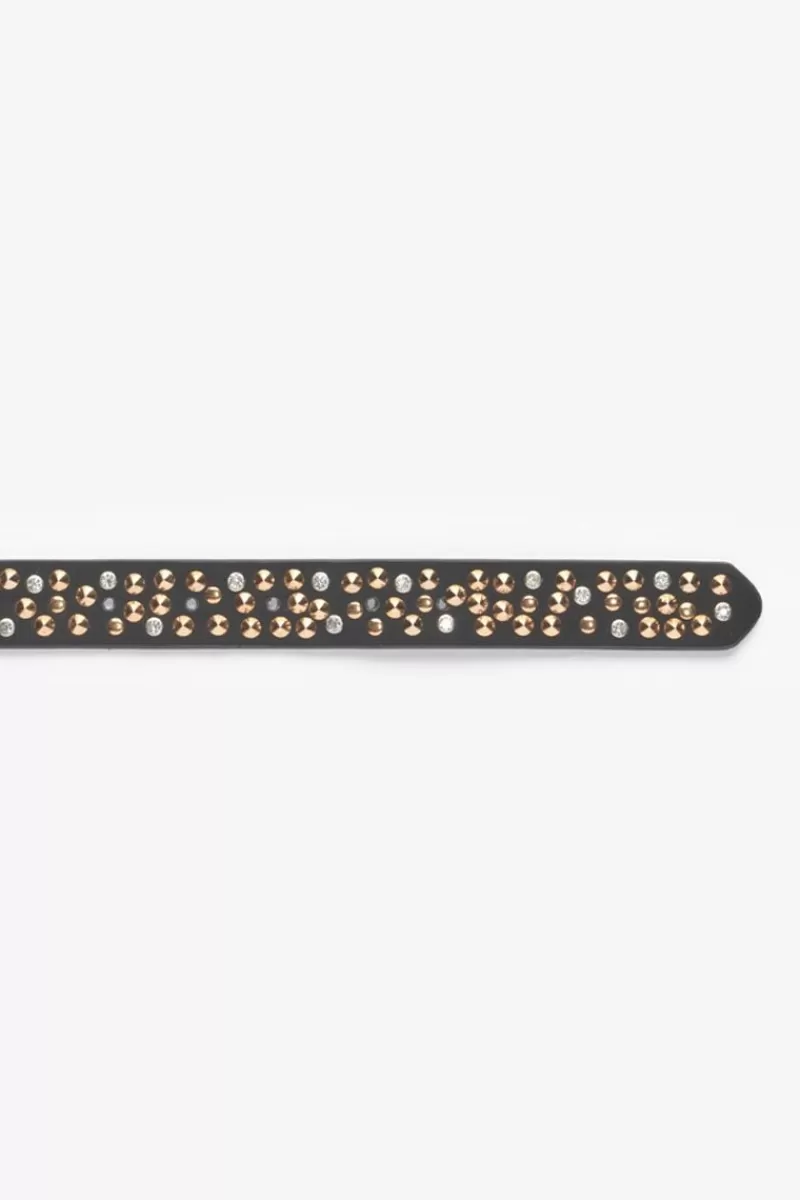 Cette Ceinture Jimena Apportera Une Touche Rock A Vos Tenues Avec Son Cuir Noir Habille De Clous Dores Et De Strass Ains…