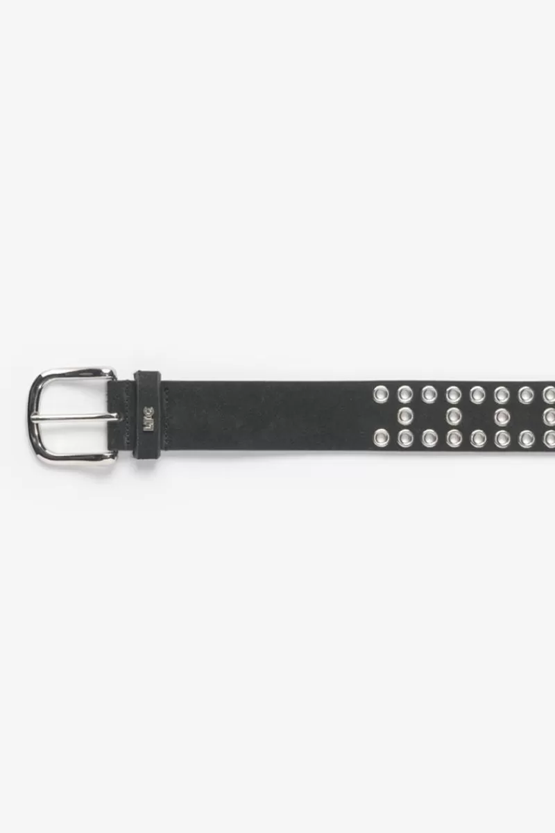 Cette Ceinture Lucia Est Ideale Pour Completer Vos Tenues Et Donner Un Cote Rock Avec Son Cuir Velours Pour Un Aspect Daim Noir Habille D’Oeillets Metalliques Argentes Et Sa Boucle Argentee.