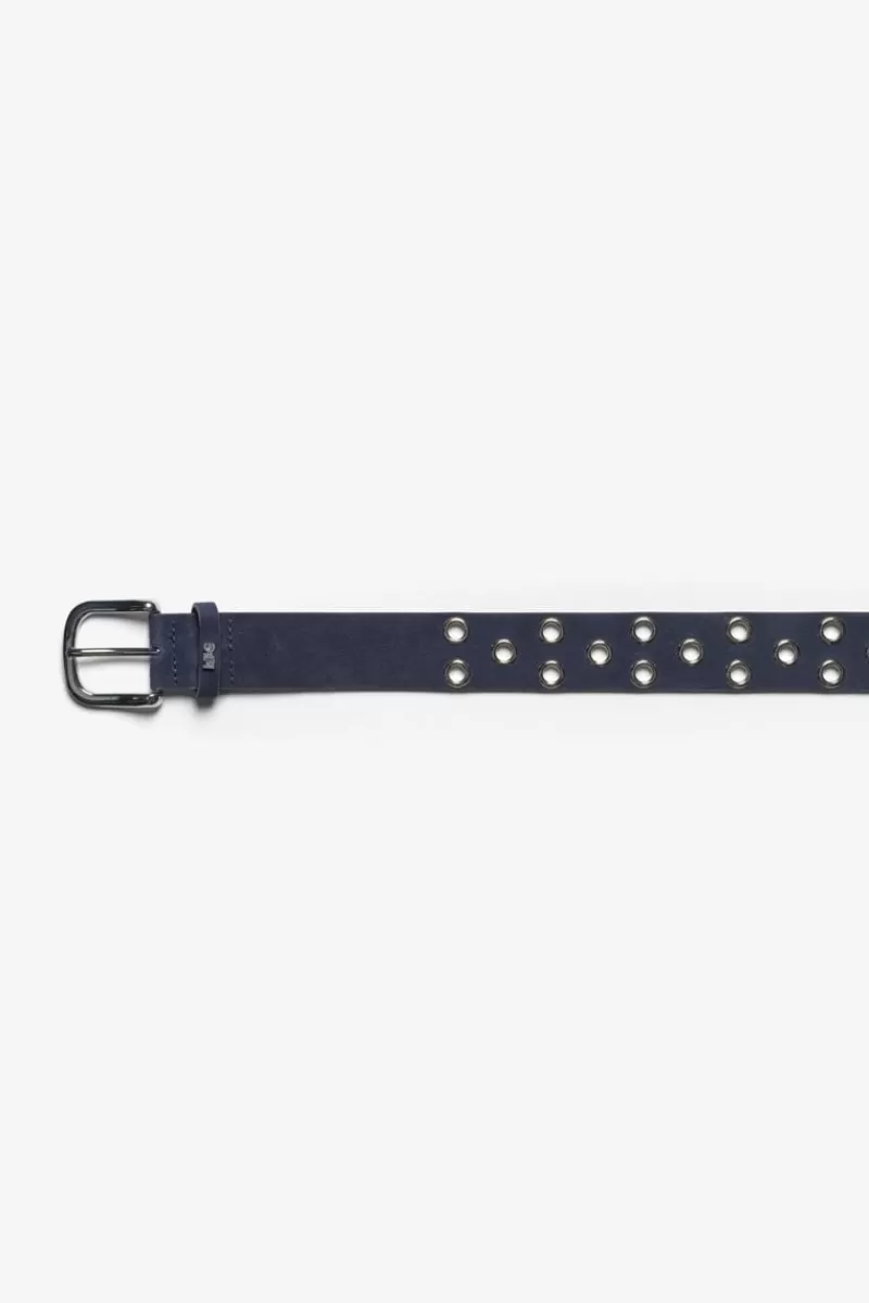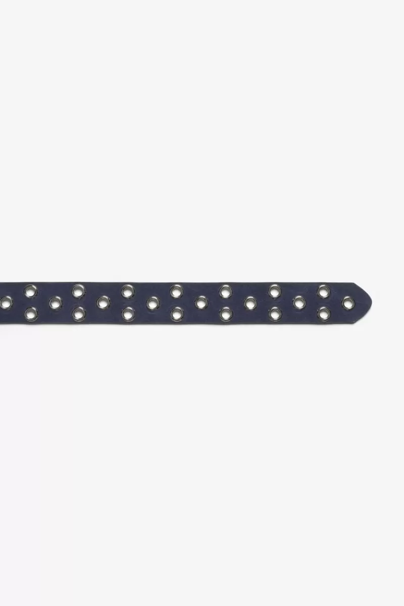 Cette Ceinture Minog En Daim Bleu Marine Est Tres Tendance Avec Ses Oeillets Metalliques Argentes, Sa Boucle Argentee Et…