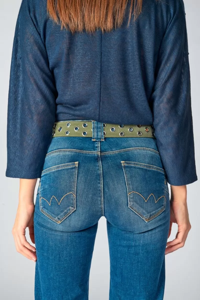 Cette Ceinture Minog En Daim Kaki Est Tres Tendance Avec Ses Oeillets Metalliques Argentes, Sa Boucle Argentee Et Son Ap…