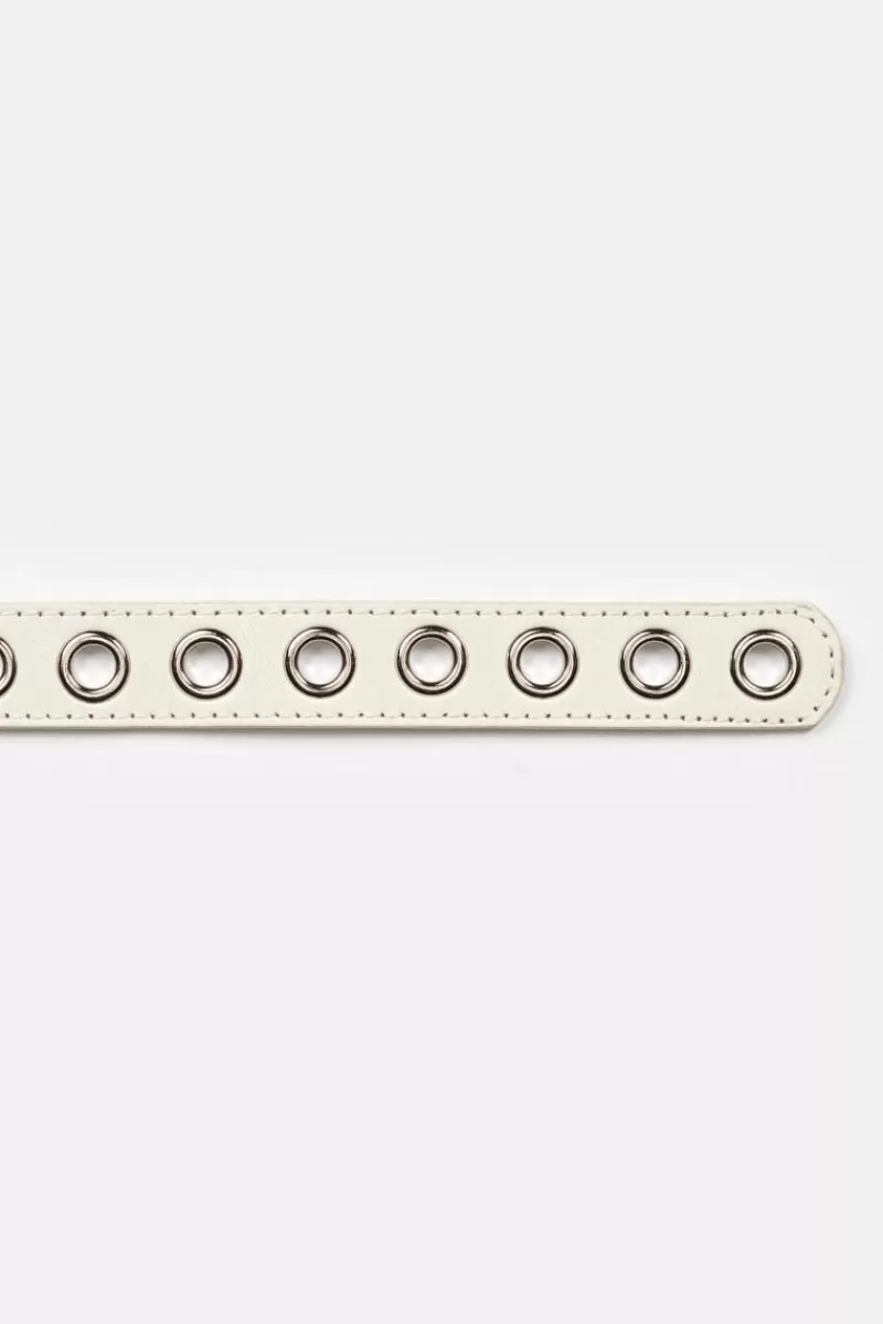 Cette Ceinture Taouna Est L’Accessoire Mode De Votre Tenue Avec Son Cuir Blanc, Ses Oeillets Argentes Tout Le Long De La Ceinture Et Sa Mini Boucle Argentee.