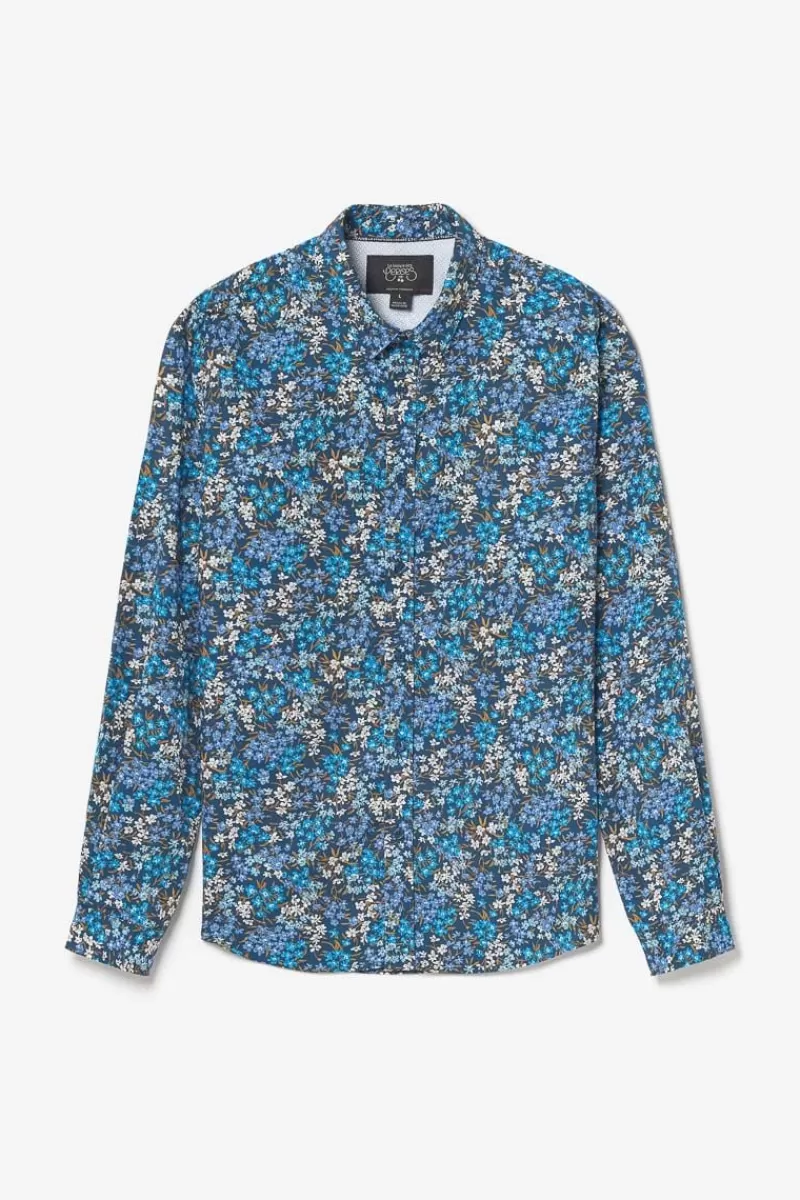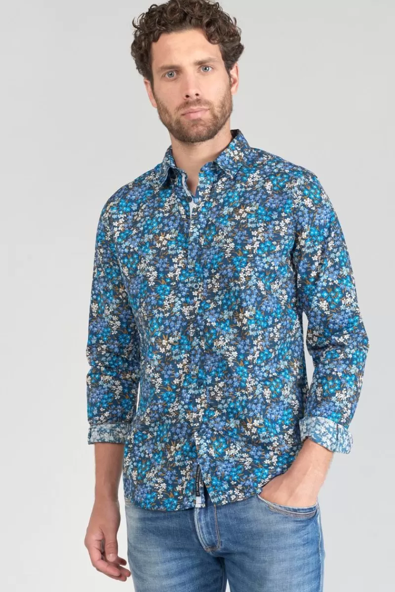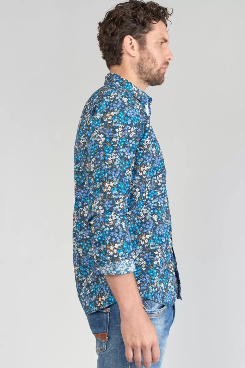 Cette Chemise Griba Bleu Nuit Vous Donnera Un Look Casual Elegant Avec Son Motif Fleuri Dans Les Tons De Bleu, Ses Boutons Nacres Bleus Et Ses Revers Aux Poignets Avec Lisere Personnalise « Le Temps Des Cerises » Et Empiecement Contrastant.Pour Le Detail Final, Un Mini Lisere Drapeau Bleu, Blanc, Rouge Dans Le Dos.